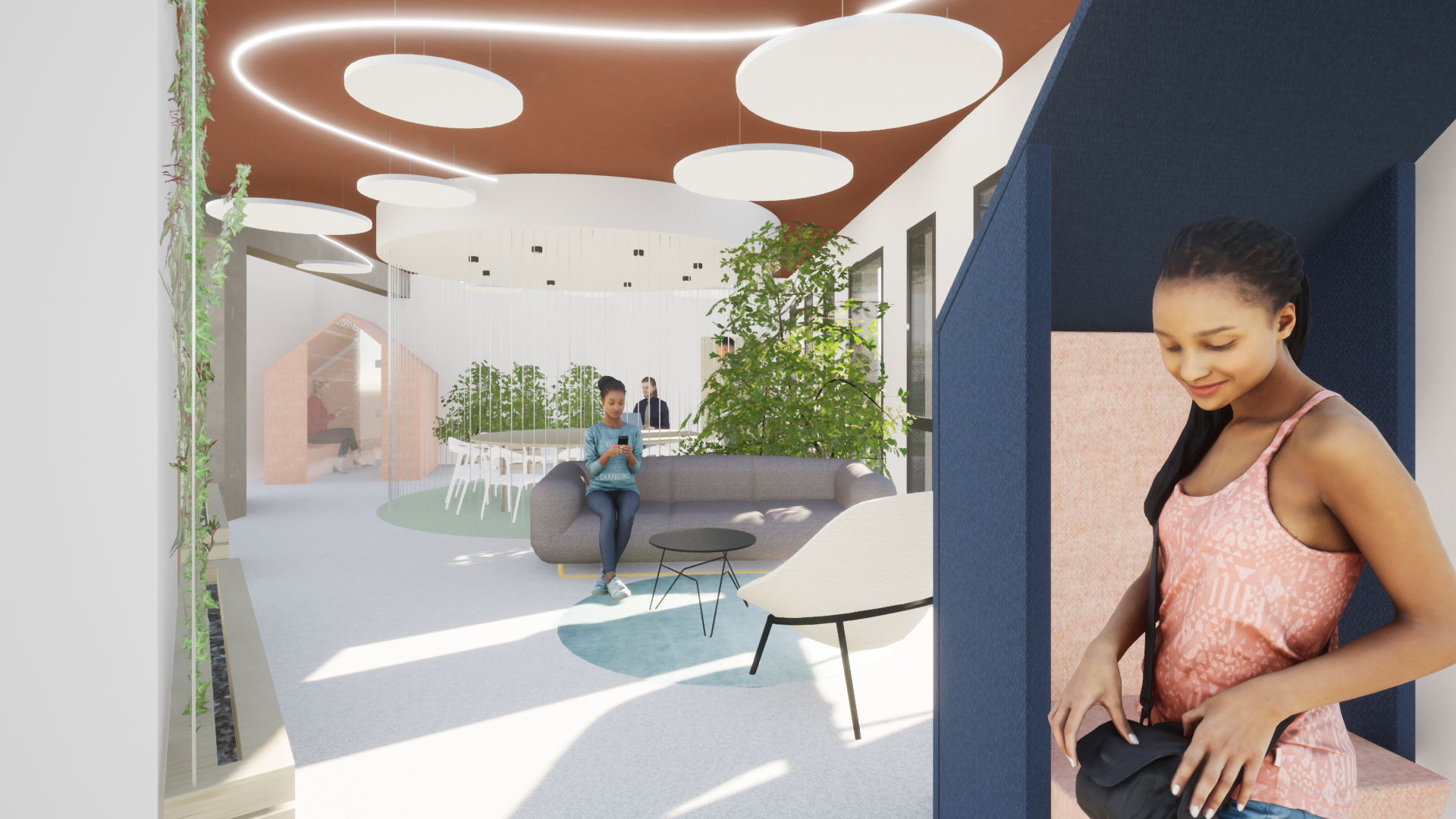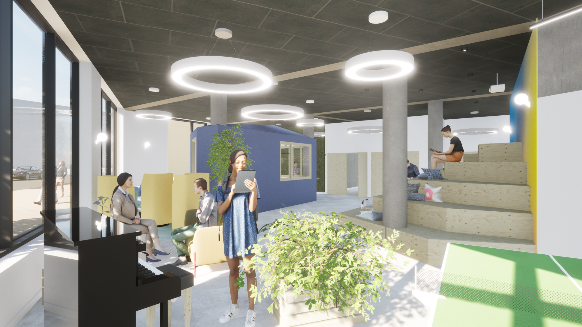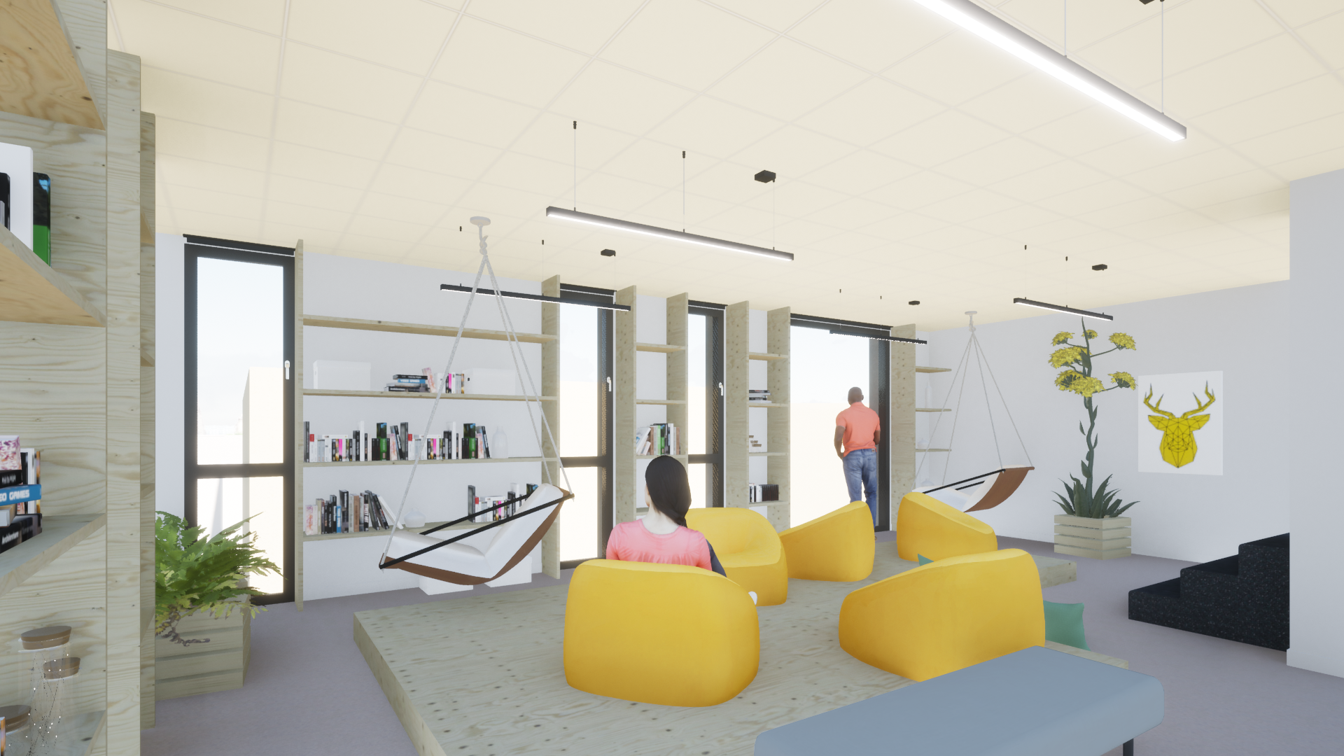 Encore une fois, les espaces de travail informels semblent être un bonne solution pour favoriser les échanges. Le design et la modernité font écho à l’image renvoyée par l’école. L’éclectisme assumé ne permet cependant pas d’enfermer dans une « bulle » l’ensemble de cet apprentissage.
