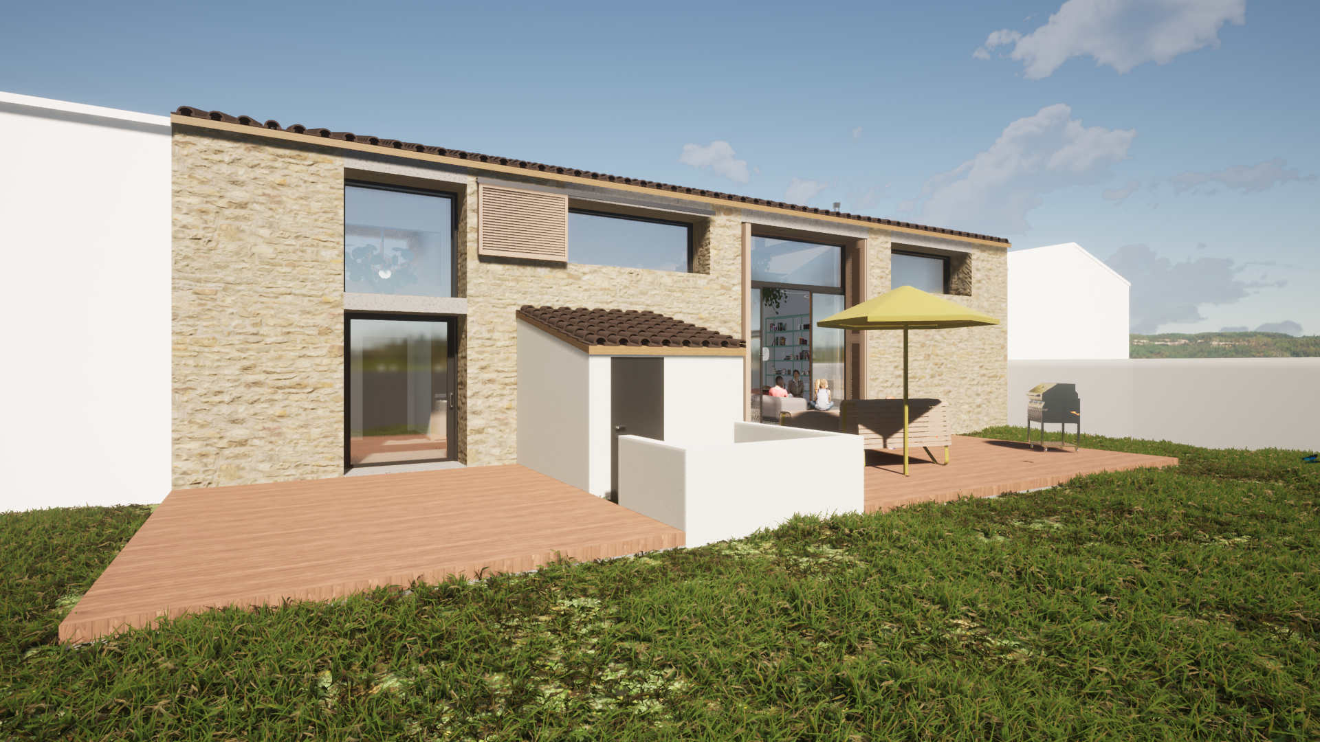 Ce projet a été mené en amont de toute rénovation, dans le but de proposer à de futurs acquéreurs une vision des possibles pour cette ancienne grange.